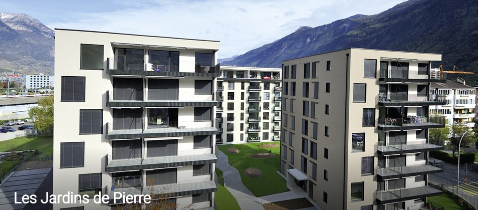Le projet « Les jardins de pierre » propose l’implantation de trois bâtiments de sept niveaux sur un terrain déjà occupé par un premier immeuble, pour accueillir un total de 76 appartements dont vingt en PPE. Les volumes sont disposés sur le site de façon à favoriser l’ensoleillement et les vues vers le relief montagneux et le Col de la Forclaz.